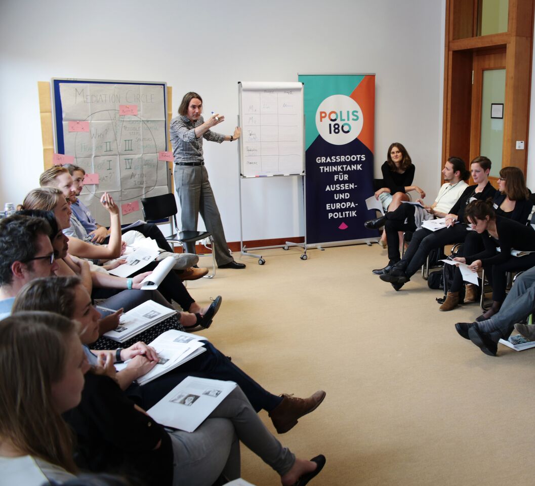 The Polis180 mediation workshop was the kick-off for a long-term engagement on civil conflict transformation and peace mediation of the organization. The project “Mediation in Foreign Policy” that is part of the Polis180 Programme on Peace and Security was set up and will continue to host events, workshops and practical trainings. It is our goal to promote inclusivity and foster awareness of civil society and youth throughout all phases of conflict management. If you want to get involved contact us! We are looking forward for you to join Polis180!