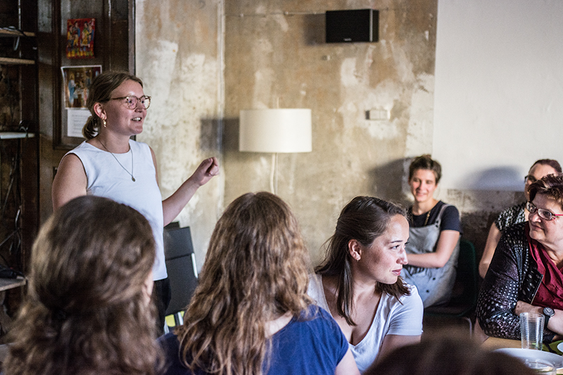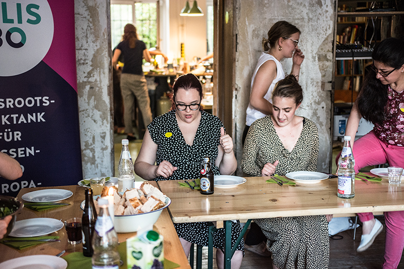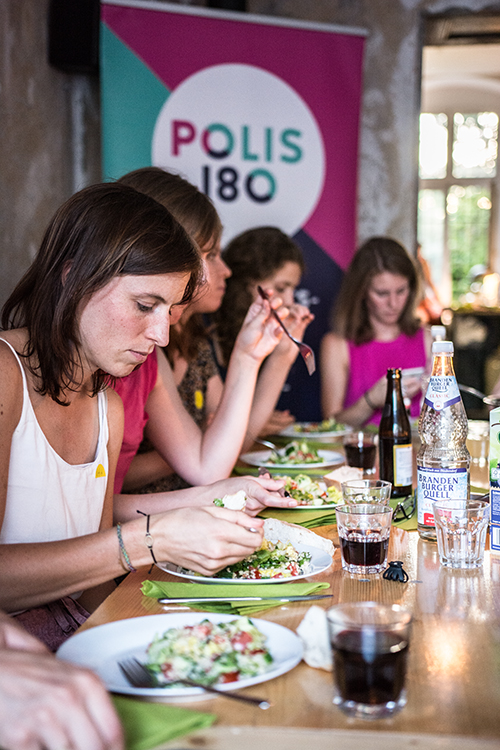 Am 25. Mai 2018 lud Polis 180 zur Auftaktveranstaltung der Reihe „Polis kocht! Außen- und Europapolitik geht durch den Magen“ im bi’bak zu Tisch. Als Expertin geladen war Margrit Zauner, Leiterin der Abteilung Arbeit und Berufliche Bildung der Berliner Senatsverwaltung für Integration, Arbeit und Soziales, die mit den Gästen zum Thema Chancengleichheit für geflüchtete Frauen auf dem Arbeitsmarkt diskutierte.