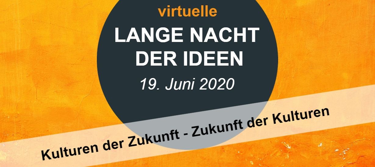 Die Lange Nacht der Ideen fand 2020 bereits zum fünften Mal statt; dieses Jahr unter dem Motto “Kulturen der Zukunft – Zukunft der Kulturen”. Organisiert und gefördert vom Auswärtigen Amt, stellt sie dessen Mittlerorganisationen sowie weitere Partner*innen aus Zivilgesellschaft, Forschung, Wissenschaft und dem privaten Stiftungssektor vor und ihr Engagement in der Auswärtigen Kultur- und Bildungspolitik. Am 19. Juni wurden dieses Jahr 19 Veranstaltungen komplett digital durchgeführt.