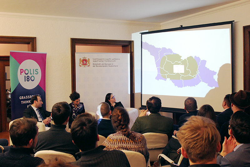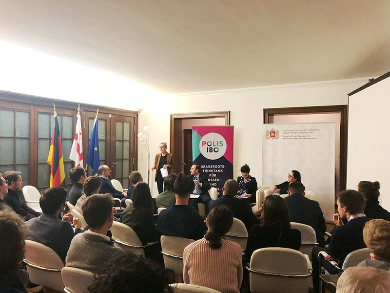 Der Abend in der Georgischen Botschaft war die erste Veranstaltung im Rahmen unserer Reihe Ost-West-Technologie. In der Veranstaltungsreihe will Polis180 den technologischen Fortschritt in Mittel- und Osteuropa näher beleuchten. Die Veranstaltungen zielen darauf ab, junge und interessierte ExpertInnenen und Studierende mit VertreterInnen aus der Region zusammenzubringen, um über Digitalisierung und neue Technologien ins Gespräch zu kommen. Die Veranstaltungen sollen dabei nicht nur einen Austausch von Ideen anregen. Sie sollen außerdem eine Möglichkeit für eine neue Art der Diskussionskultur zwischen „Ost“ und „West“ darstellen. Durch einen Fokus auf Digitalisierung und Technologie will Polis180 zeigen, dass es trotz Spannungen zwischen einigen Staaten immer einen Raum für Kooperation zwischen Ost und West gibt, und dass wir noch viel voneinander lernen können.