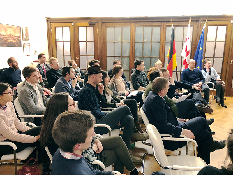 Am 23. Februar 2018 diskutierten wir mit ca. 35 Interessierten in der Botschaft von Georgien über E-Governance und E-Government in Georgien. Nicht nur in der Region nimmt Georgien dabei eine Vorreiterrolle ein. In den letzten 15 Jahren hat Georgien sich zu einem modernen Staat mit attraktiven wirtschaftlichen Rahmenbedingungen und korruptionsfreier Verwaltung entwickelt – und digitale Technologien spielten dabei eine große Rolle. Georgiens öffentliche Dienstleistungsgebäude wurden nicht umsonst mit dem “Public Service Award” der Vereinten Nationen ausgezeichnet.
