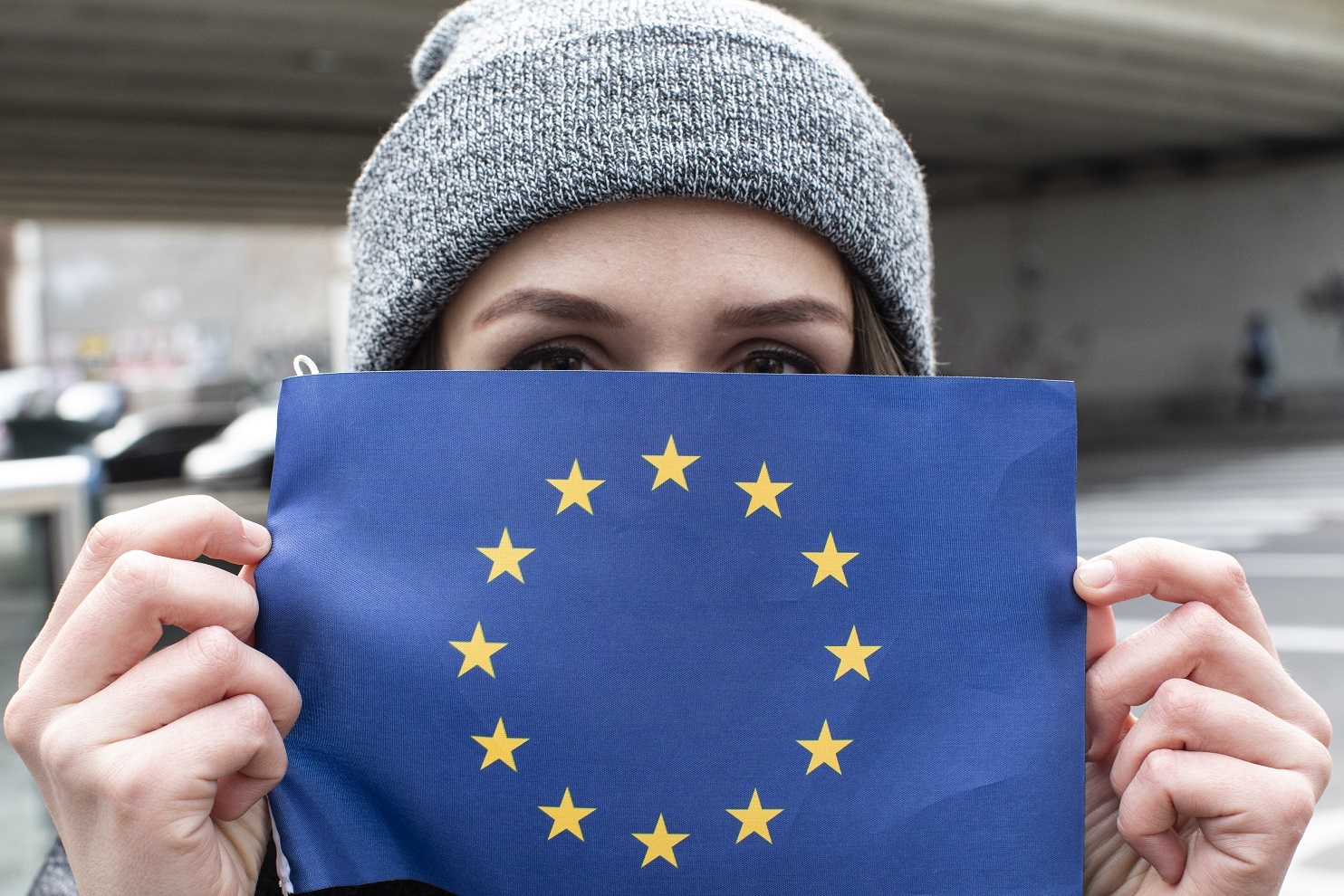 EU flags and hands