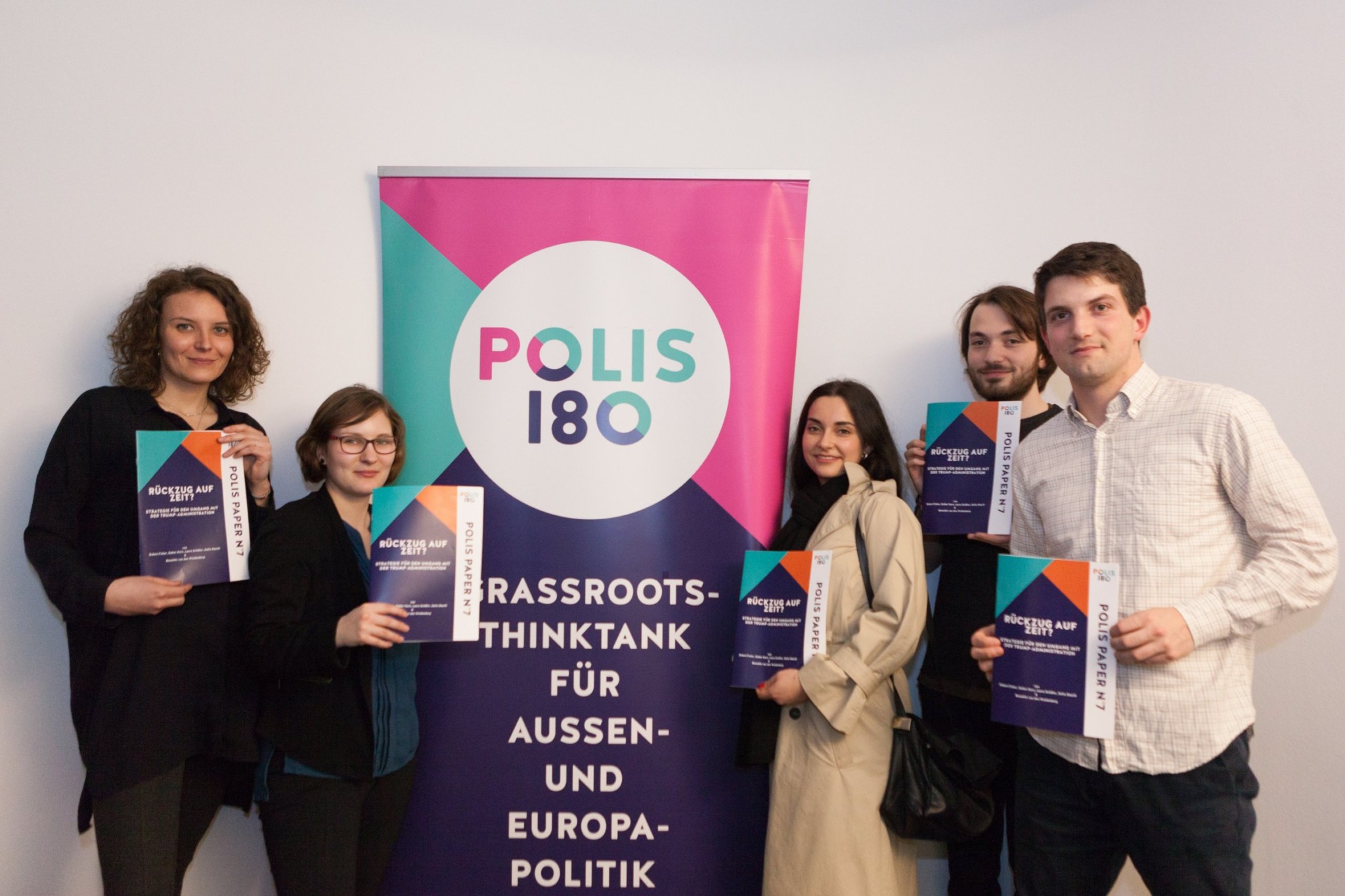 Am 13. Februar 2017 präsentierte Polis180 das zweite Polis Paper mit dem Titel „Long Shots and Bold Claims: Scenarios on Future Challenges to the Global Order” der Autoren Jannes Elfgen, Ann-Sophie Gast, Stephan Hoare und Salome Minesashvili.
