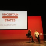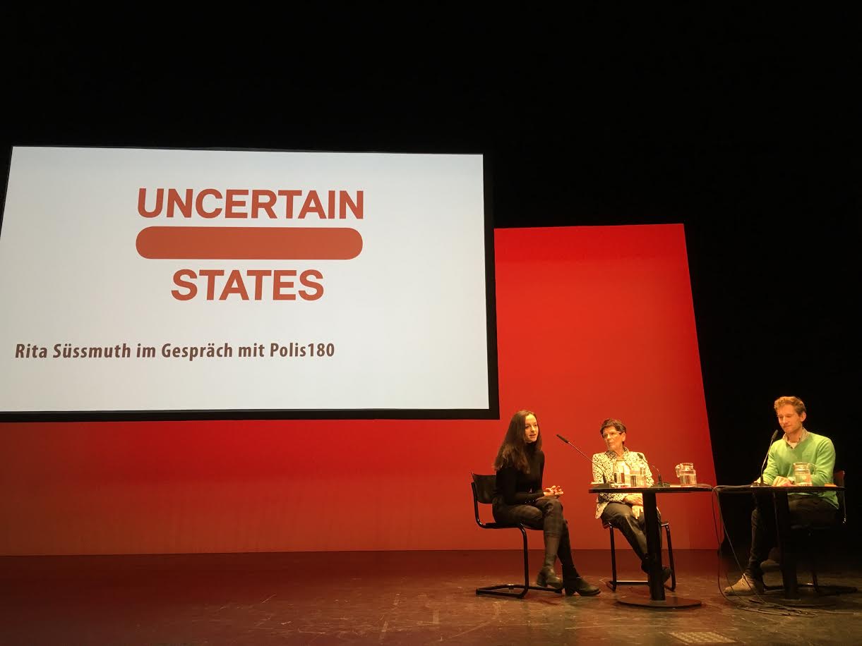 Die Kunstausstellung “Uncertain States- Künstlerisches Handeln in Ausnahmezuständen” greift dieses Phänomen auf und diskutiert es. Begleitend dazu halten ExpertInnen aus Politik, Kunst, Soziologie und Literatur Vorträge, die DISKURSE, die von Polis180 moderiert und kommentiert werden. Arbeiten von KünstlerInnen im Nationalsozialismus und dem Kalten Krieges werden verbunden mit wissenschaftlichen und künstlerischen Recherchen zeitgenössischer Akteure. Positioniert als internationale wissenschaftliche Nachwuchsgeneration wird Polis180 etablierte ExpertInnen mit kritischen Fragen konfrontieren und einen dynamischen Perspektivwechsel befördern. Die DISKURSE sind auch als Podcast abrufbar. Zum Podcast.